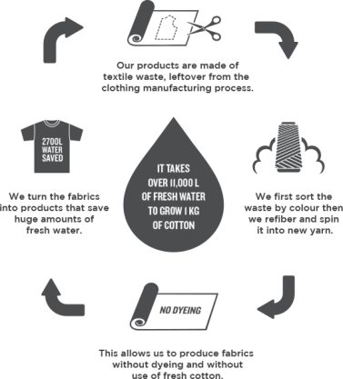 “Back then we started thinking about using completely recycled textiles and so we began looking for fabrics that would be 100% recycled. To our surprise, we couldn’t find any suppliers for recycled fabrics. We then got excited and realized that we could start supplying recycled textiles ourselves.”